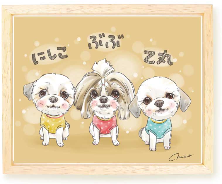 高い画力に裏打ちされた、繊細でかわいい似顔絵が若い女性に支持を得ており、ウェディングやプレゼントの商品が人気。特に、似顔絵とウェディングツリーを掛け合わせた作品は初めて彼女が世に送り出し、その人気ぶりから他の似顔絵作家も追随しているほど。