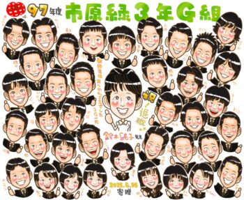 部活のチームメートや職場の同僚など、全員の似顔絵を描いた記念品に。
