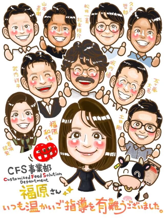 先日は、お客様からの ご提案で吹き出しつきの寄せ書き似顔絵を制作させていただきました^ ^