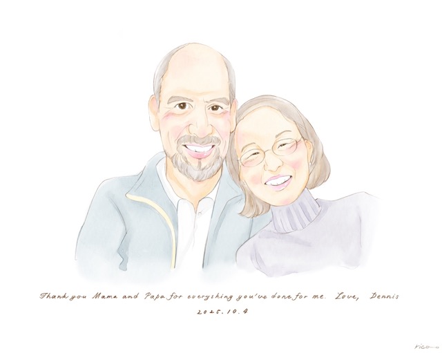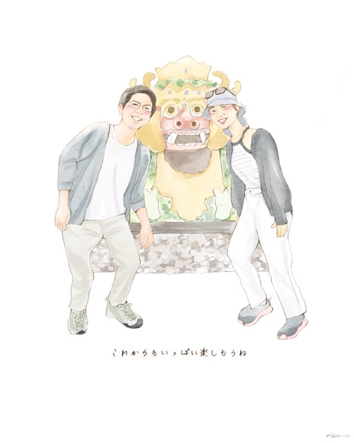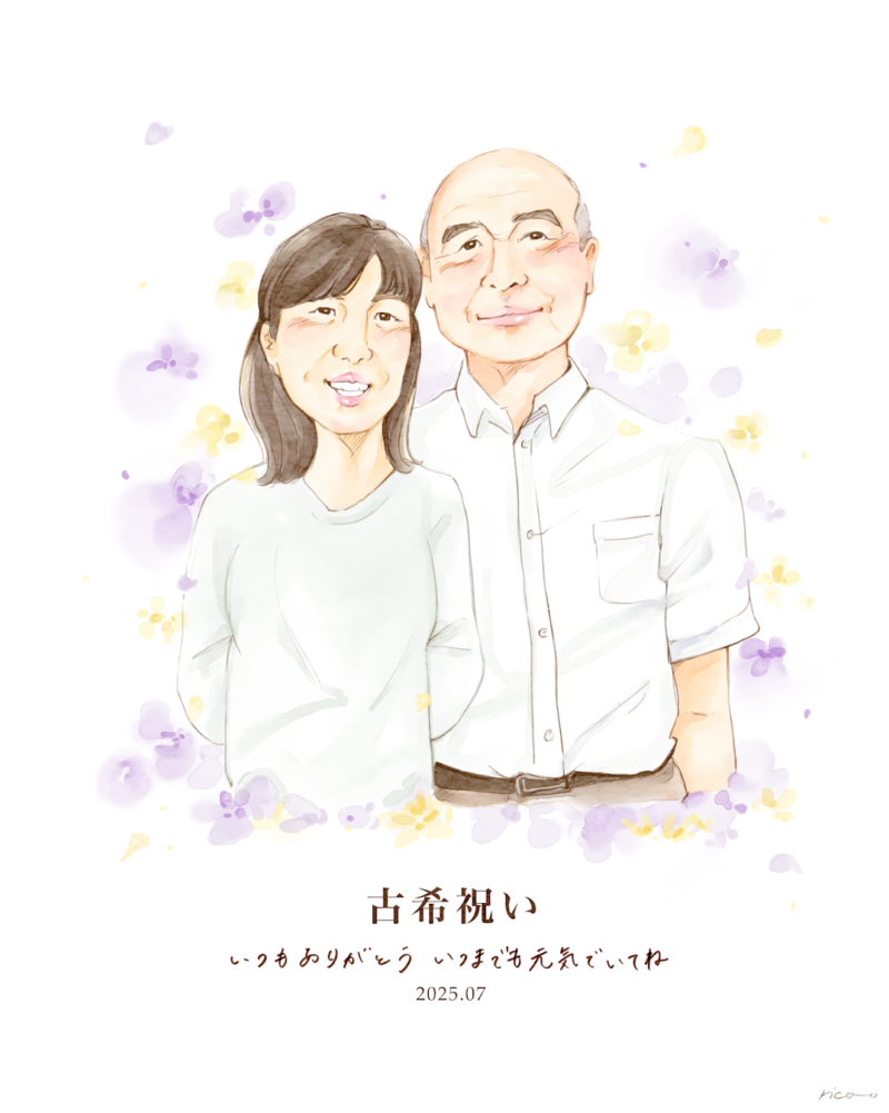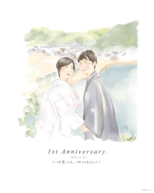 お子さまの似顔絵とともに、誕生の記録を美しくデザイン。